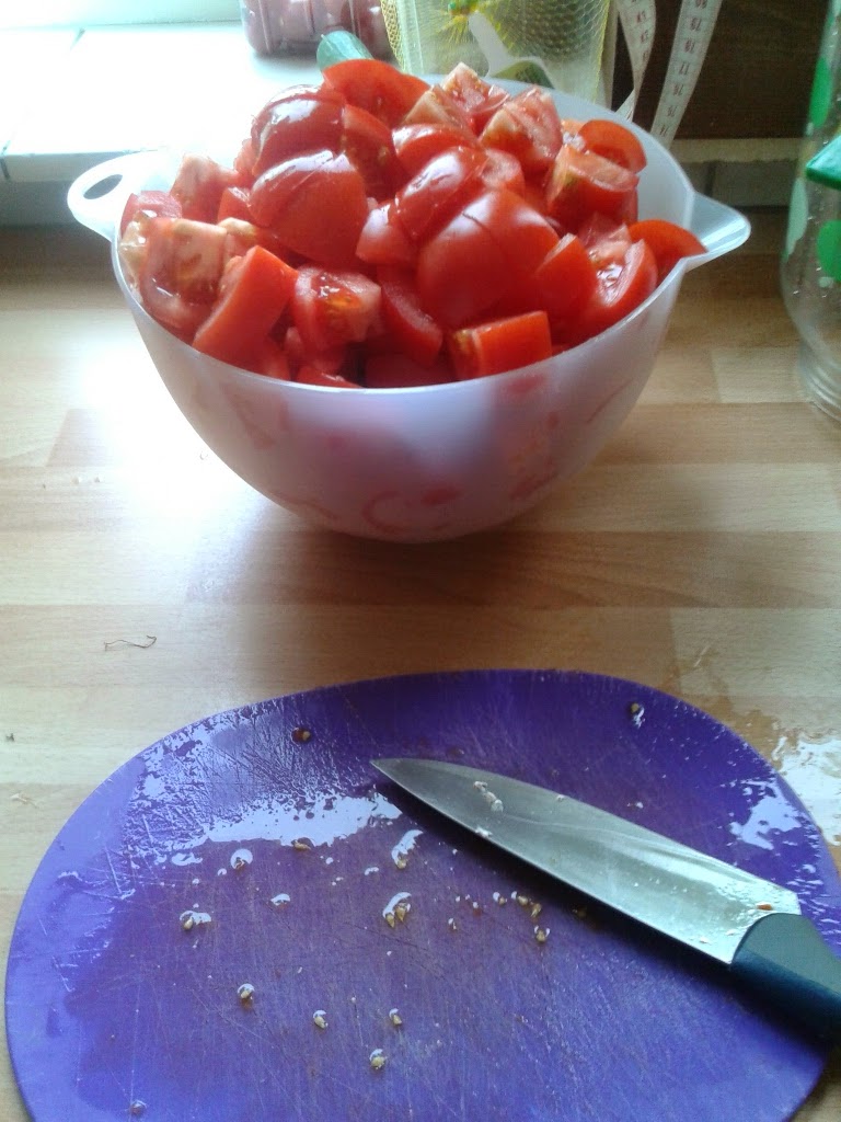 Een tijdje geleden waren de tomaten flink in de aanbieding, dus mocht er ruim 6 kilo mee naar huis.
