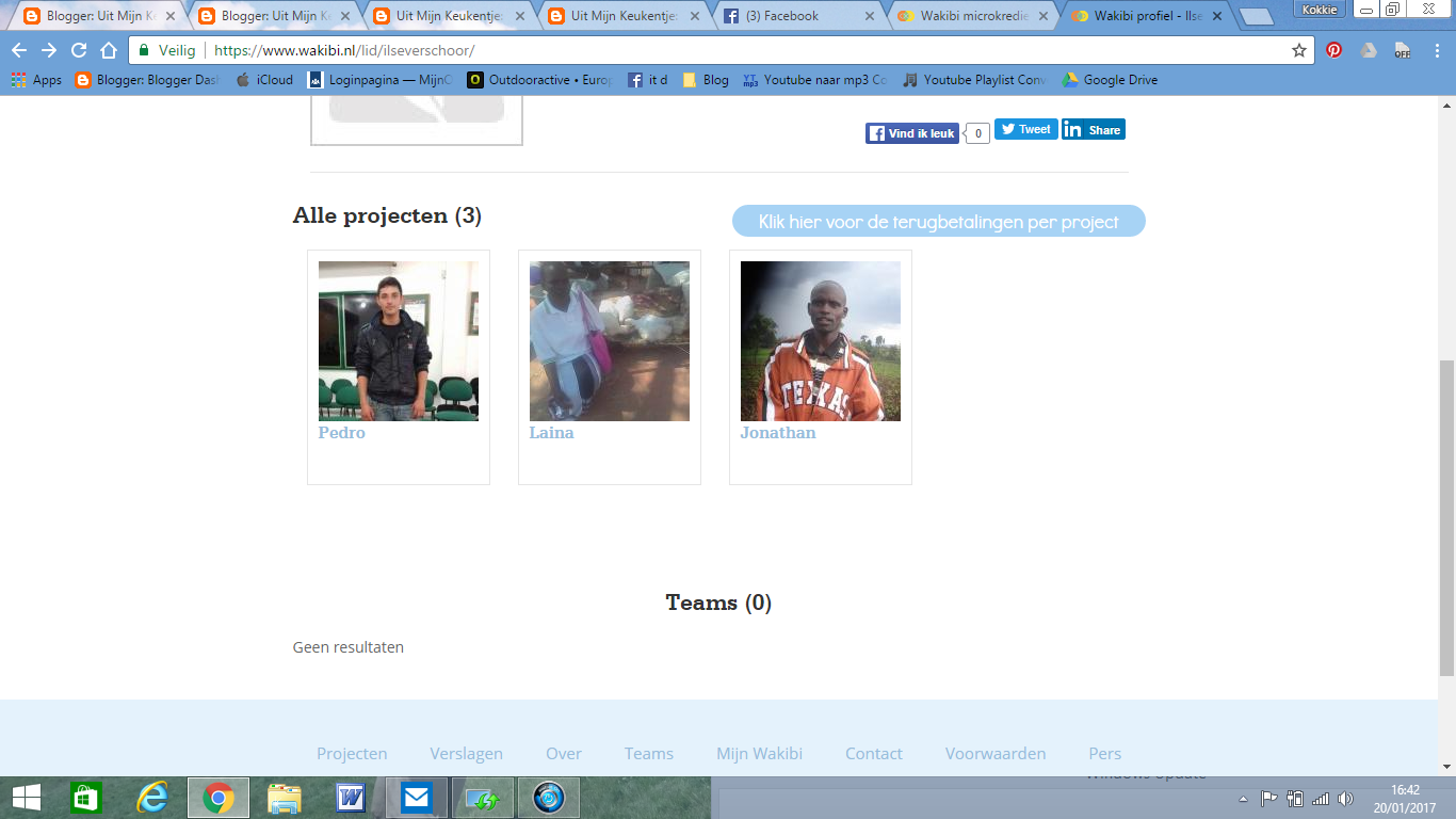 Wat ik jullie wel aan zou willen raden. Om eens naar te kijken is www.wakibi.nl. Een stichting, waar je mensen een microkrediet leent. Wij legde de eerste keer 25,- in. Deze lening gaven we aan een vrouw die kippen wilde kopen om zo te voorzien in haar eigen levensbehoefte maar ook voor de verkoop. Geregeld kregen we van wakibi updates, iedere euro die ze terug betaalde kregen wij weer terug en een melding van. Kort daarop legde we nog eens 25 euro in en sponsorde een andere dame. Eind vorig jaar hadden we in totaal weer 25,- terug en kozen we een extra persoon erbij. Ook deze werd gesponsord en ging terug betalen. Ondertussen hebben we bijna 50,- weer terug en gaan binnenkort weer 2 nieuwe mensen zoeken die we kunnen helpen.